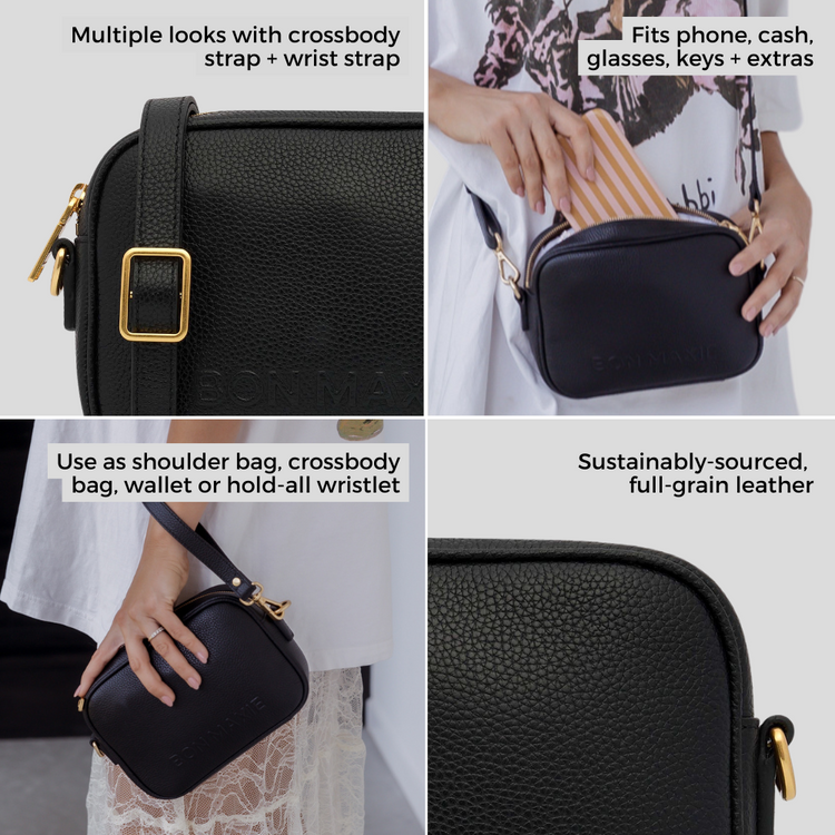4-in-1 design: crossbody/shoulder bag, wristet pouch, clutch, hold-all wallet.