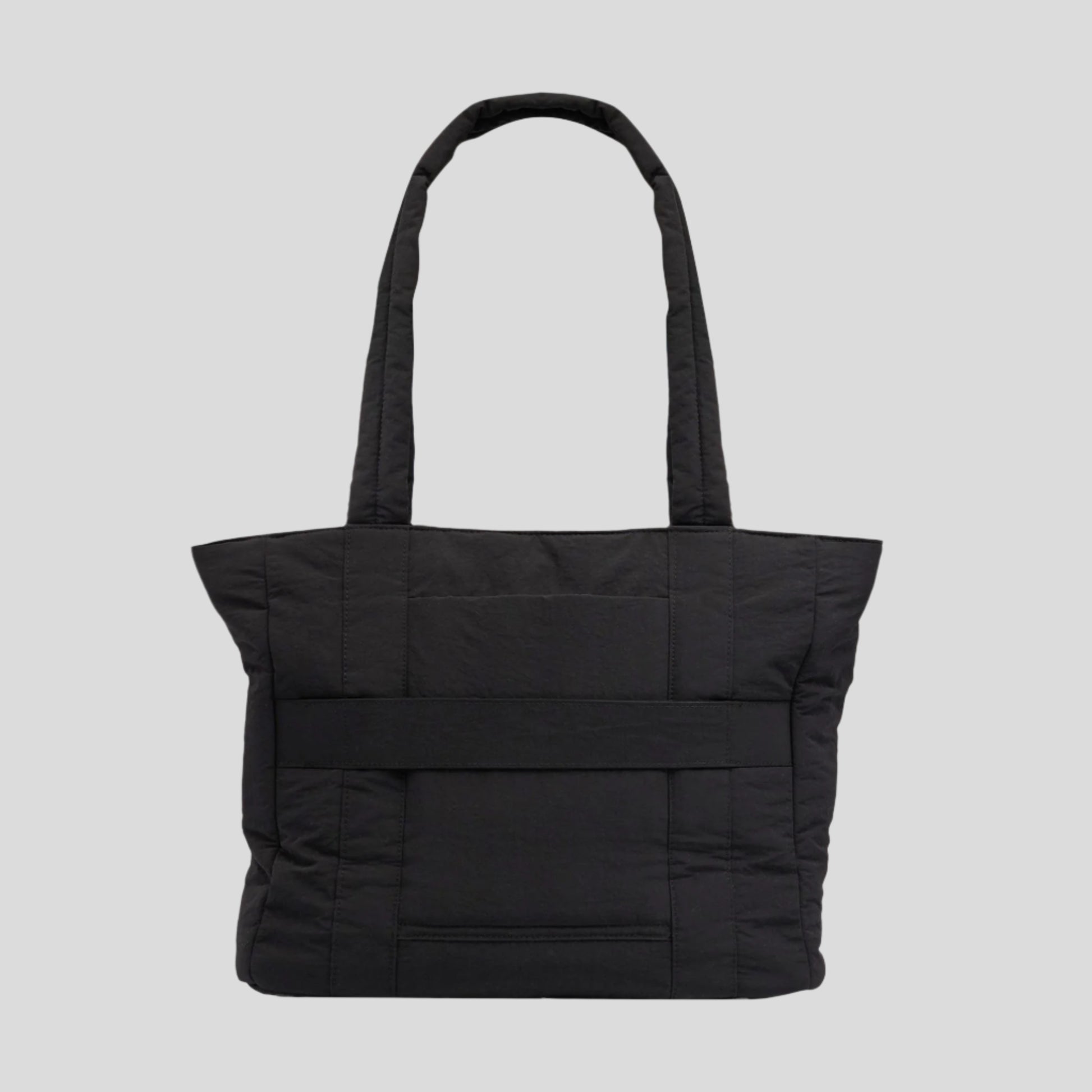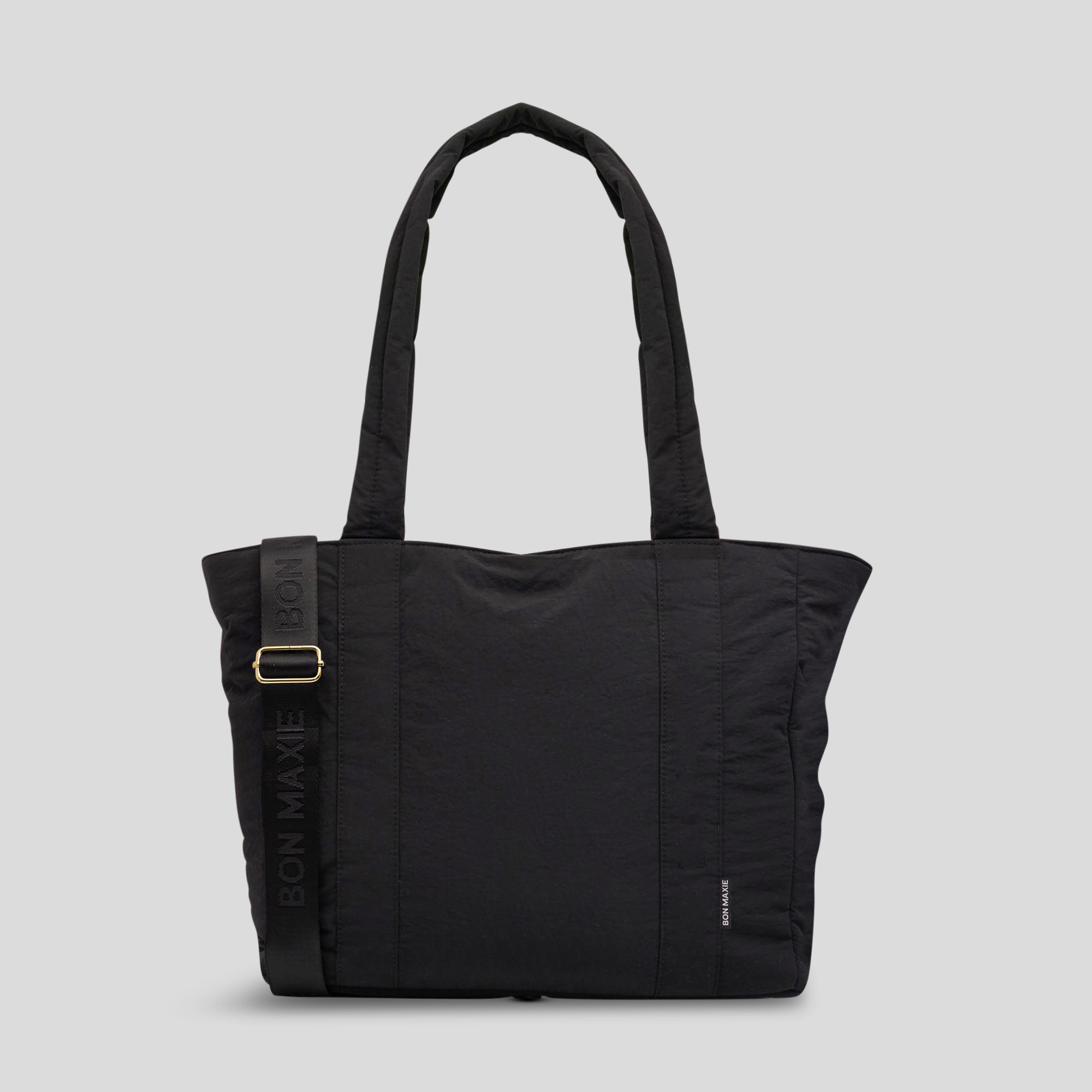 Large Structured Tote Bag in nylon with leather -- Black (Leather/Nylon)