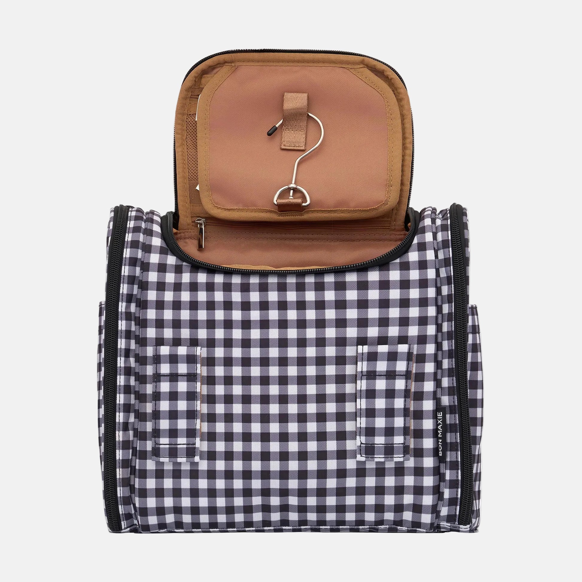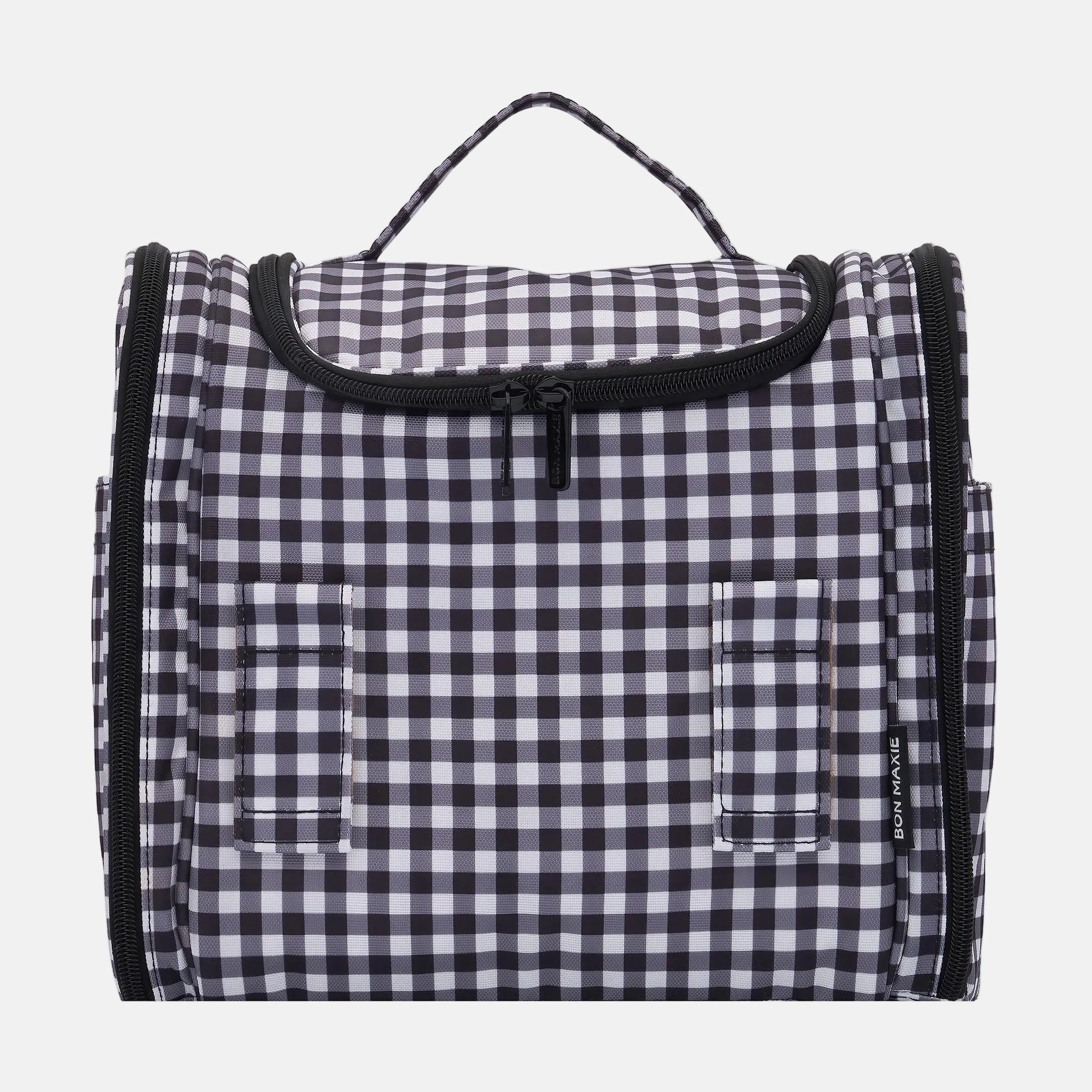 Hanging Toiletry Bag + Pouch Set with 15 pockets - Black Gingham