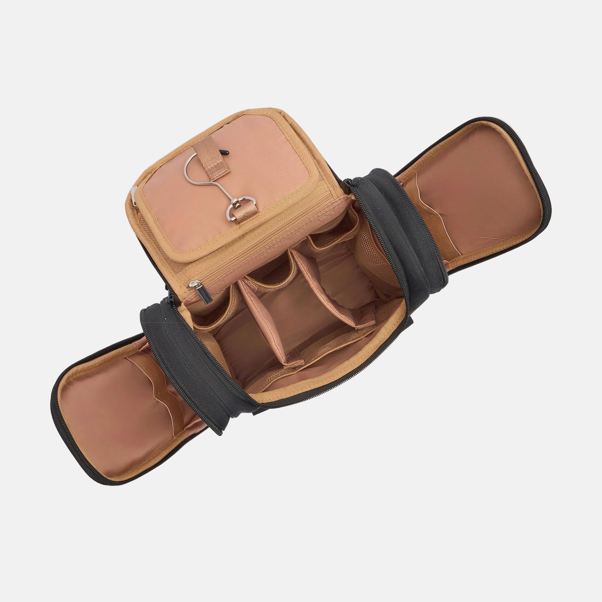 Hanging Toiletry Bag + Pouch Set with 15 pockets - Tan Stripe