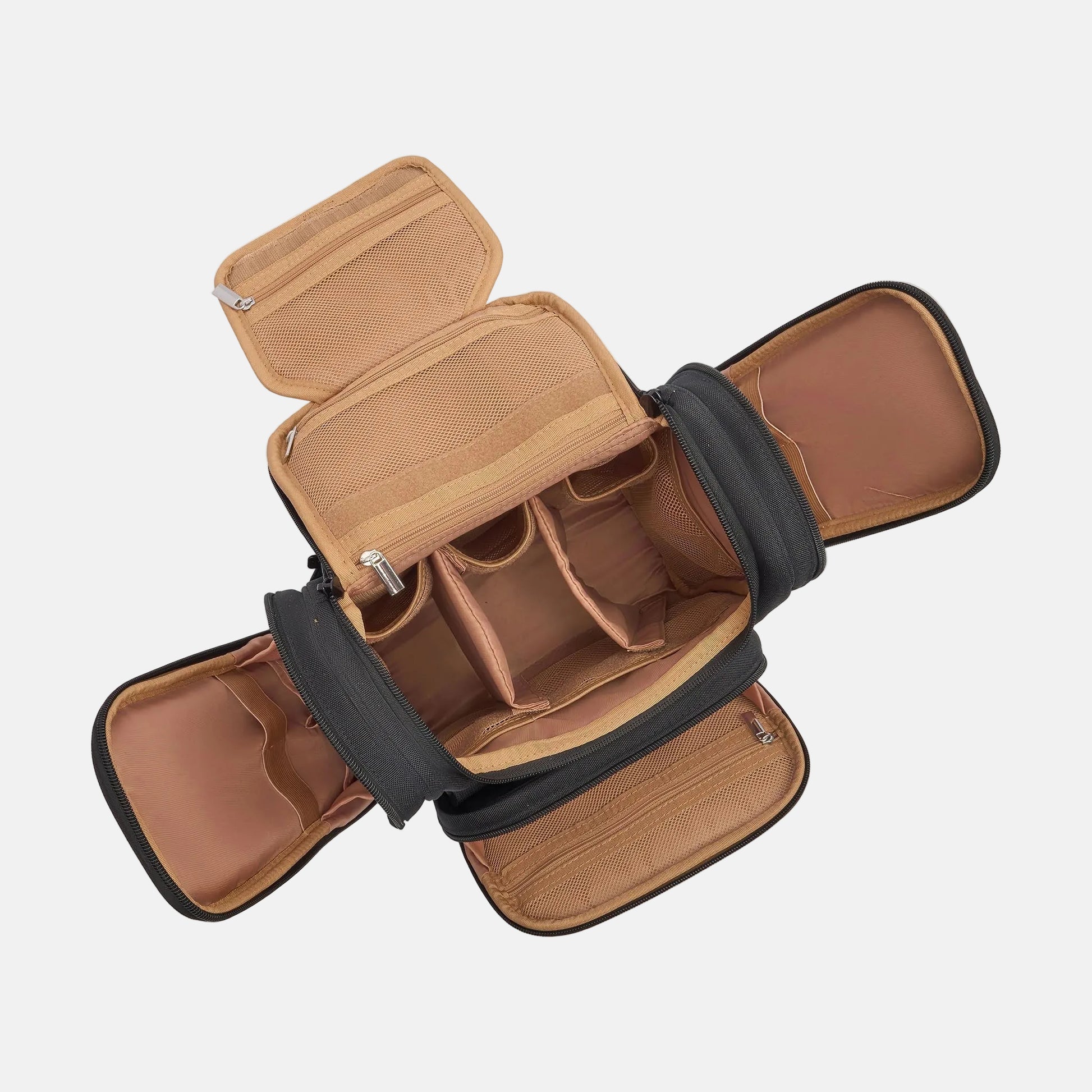 - 2 x zipped mesh pockets (one with zips both ends for hanging or table-top access)