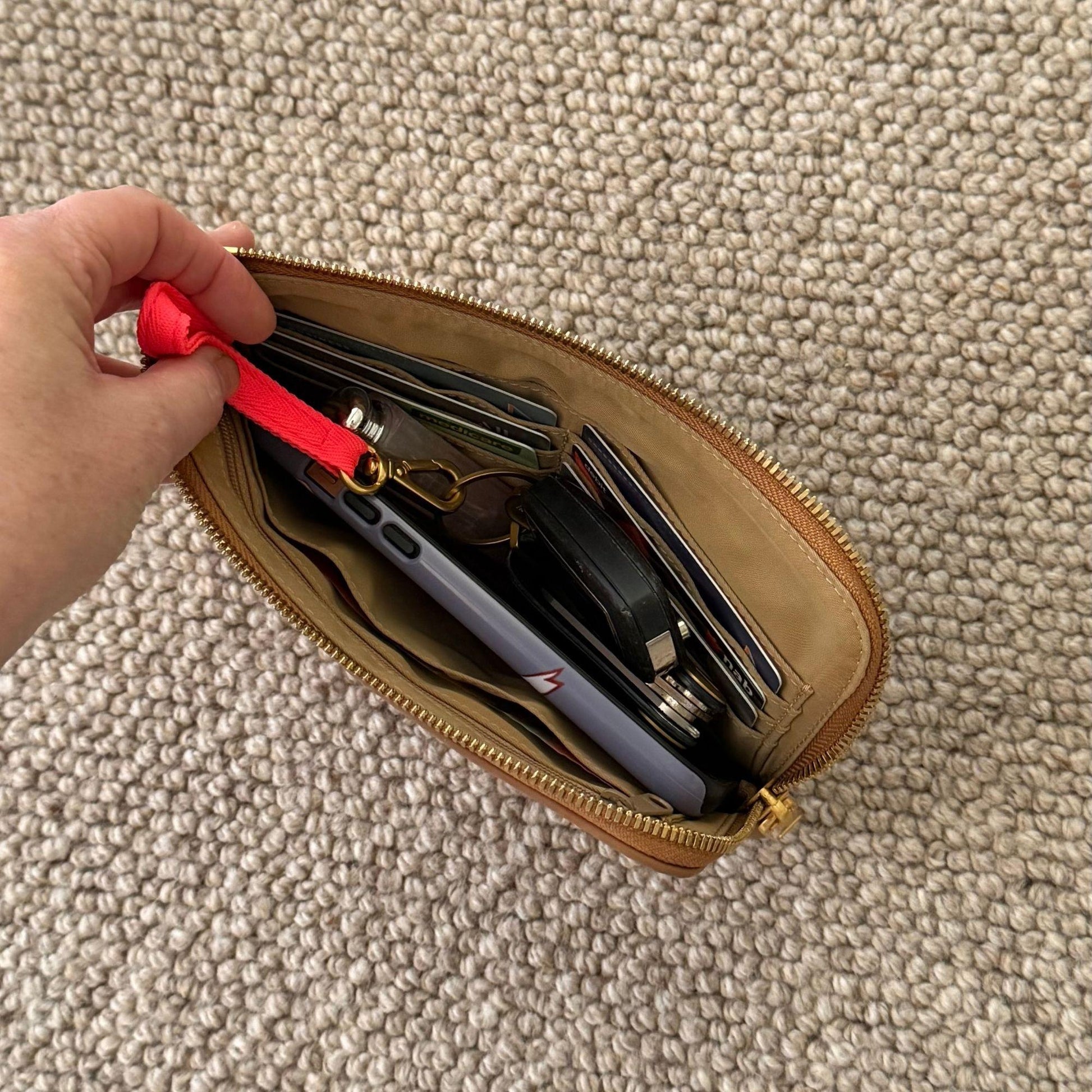 - Full-length zipped coin section = keeps things flat