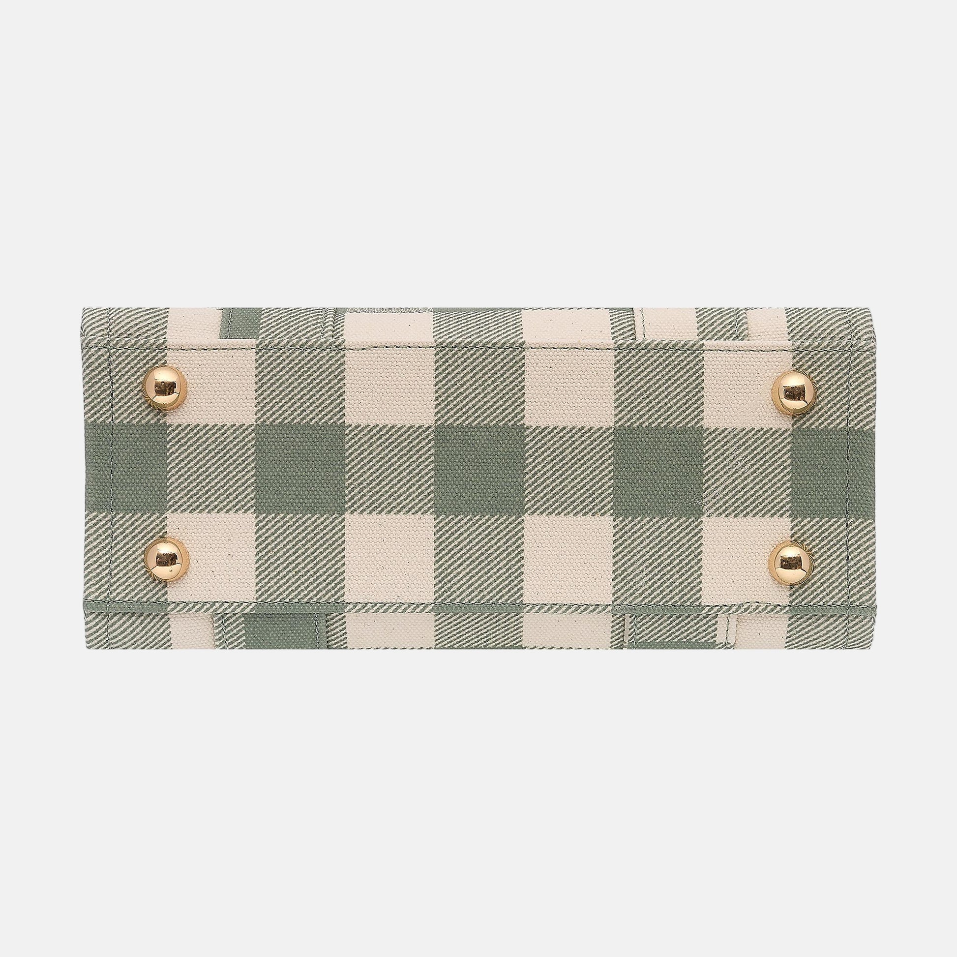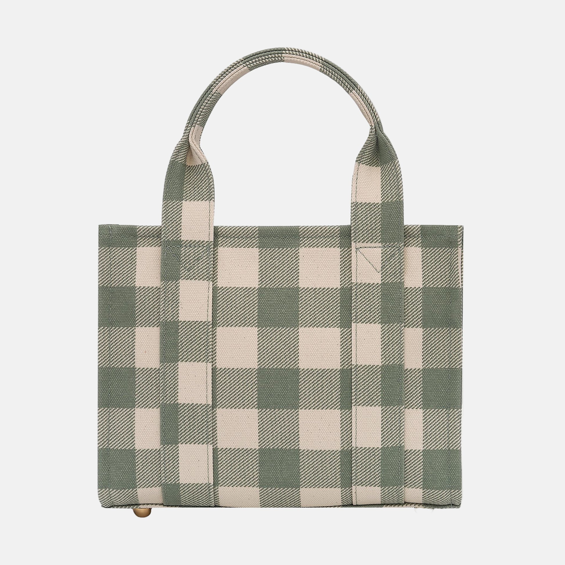 Micro Structured Tote Bag in coated canvas - Sage Gingham