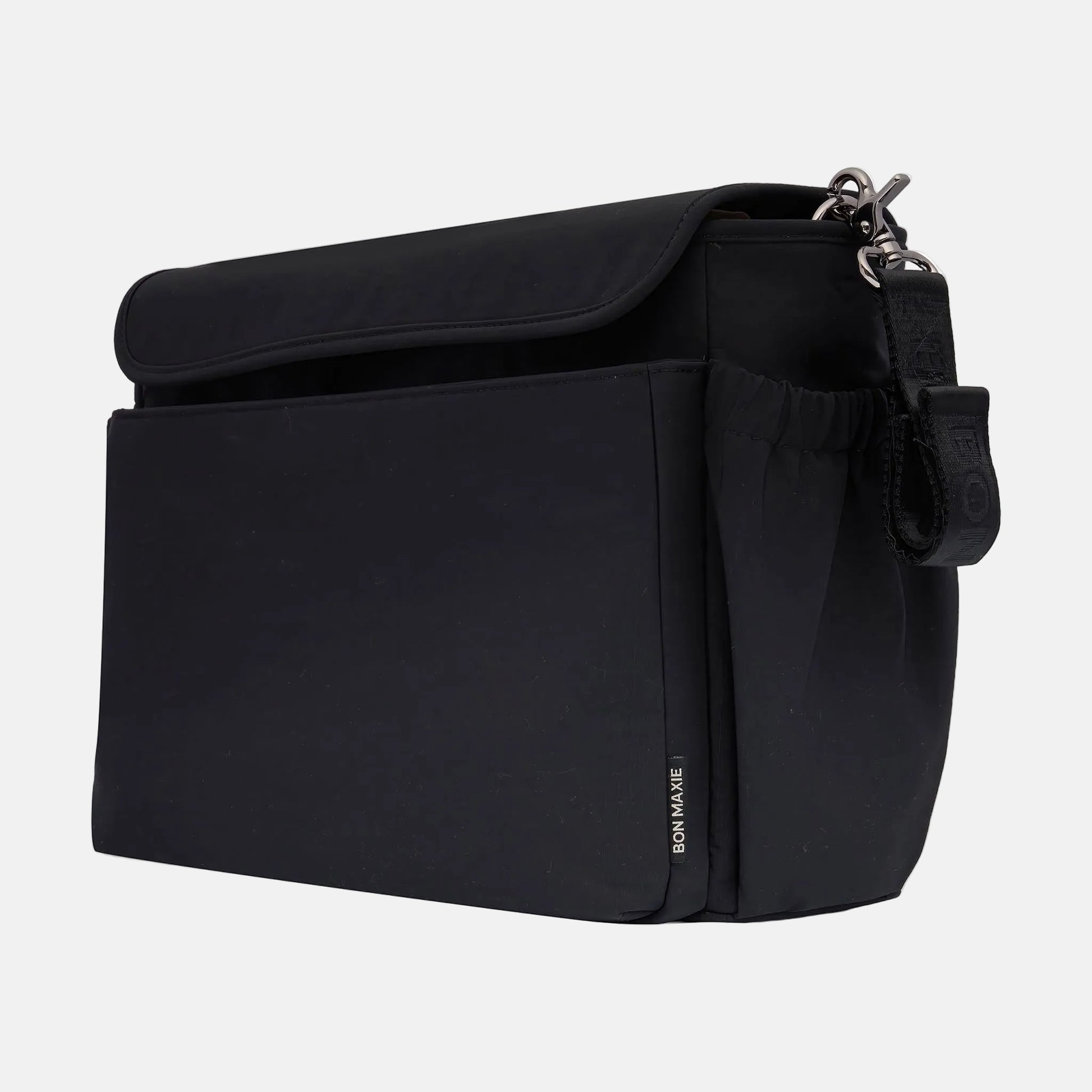 Nappy Bag/Pram Caddy Hybrid in washed nylon - Black