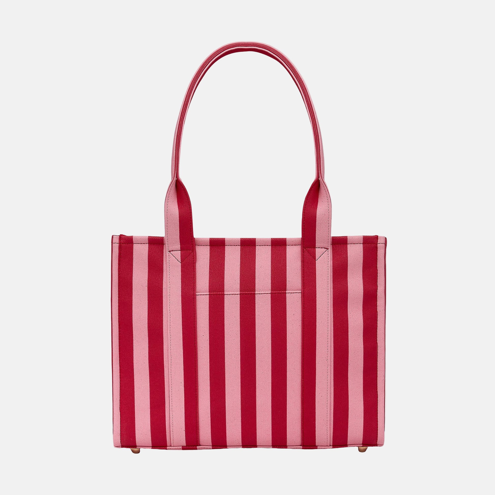 NEW: long shoulder straps vs our other Small Tote grab handles. Meet the Small Bon Vivant Structured Tote Bag—cute but capacious, with just enough space to stay organised without the bulk. Crafted from coated, splash-resistant canvas with coffee-coloured, water-resistant lining, it features a zipped top, Stanley-compatible drink bottle holder, 14-inch laptop sleeve, plenty of pockets, a back slip pocket, key clip, metal feet and a removable crossbody strap. Structured, practical and good-looking—your daily essentials, cleverly sorted. The middle of our tote 3 sizes.